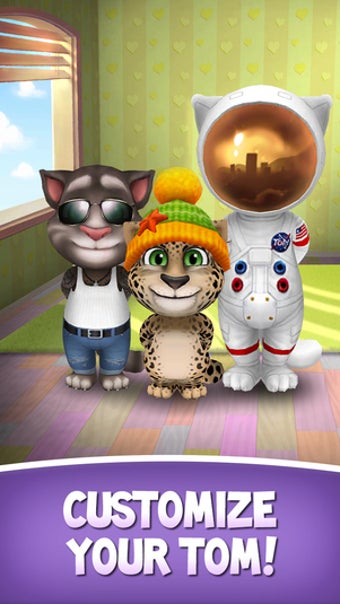 Talking Tom Cat ve diğer Outfit 7 konuşan hayvan oyunlarında yapabileceğiniz tüm temel şeyleri, yani Tom'un yüksek tiz bir sesle söylediklerinizi tekrar etmesini ve farklı şekillerde ona dokunarak onunla etkileşim kurmasını sağlayabilirsiniz. Ama Konuşan Tom'umun biçimi artık sanal hayvan oyununa daha çok benziyor, Pou . Kedicik arkadaşınla, mini oyunlar oynamak, görünüşünü özelleştirmek, yiyecek seçmek ve Tom'un evini senin istediğin gibi dekore etmek gibi daha çok şey var.